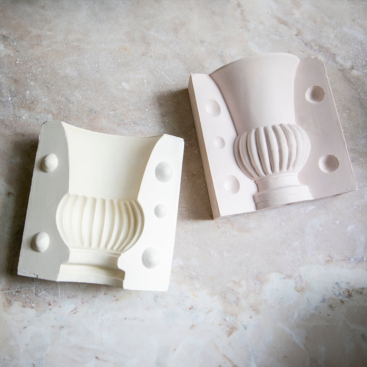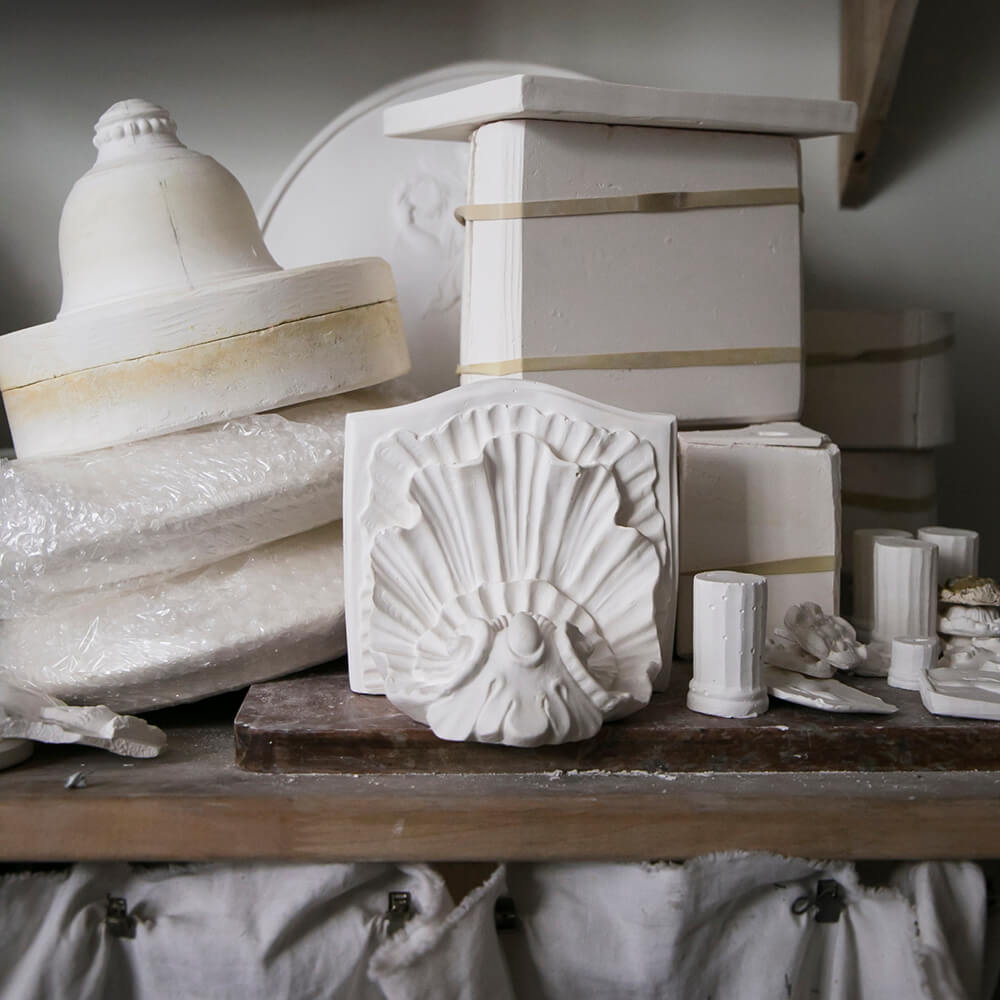 The matrix, also known as the “mold mother” or “mold of the mold”, is used to generate several molds, each of which has a limited lifespan (around 40 parts). It can be made of plaster or silicone. The manufacturing molds, cast in plaster from the matrix, are then used by the factory to make all our porcelain pieces.