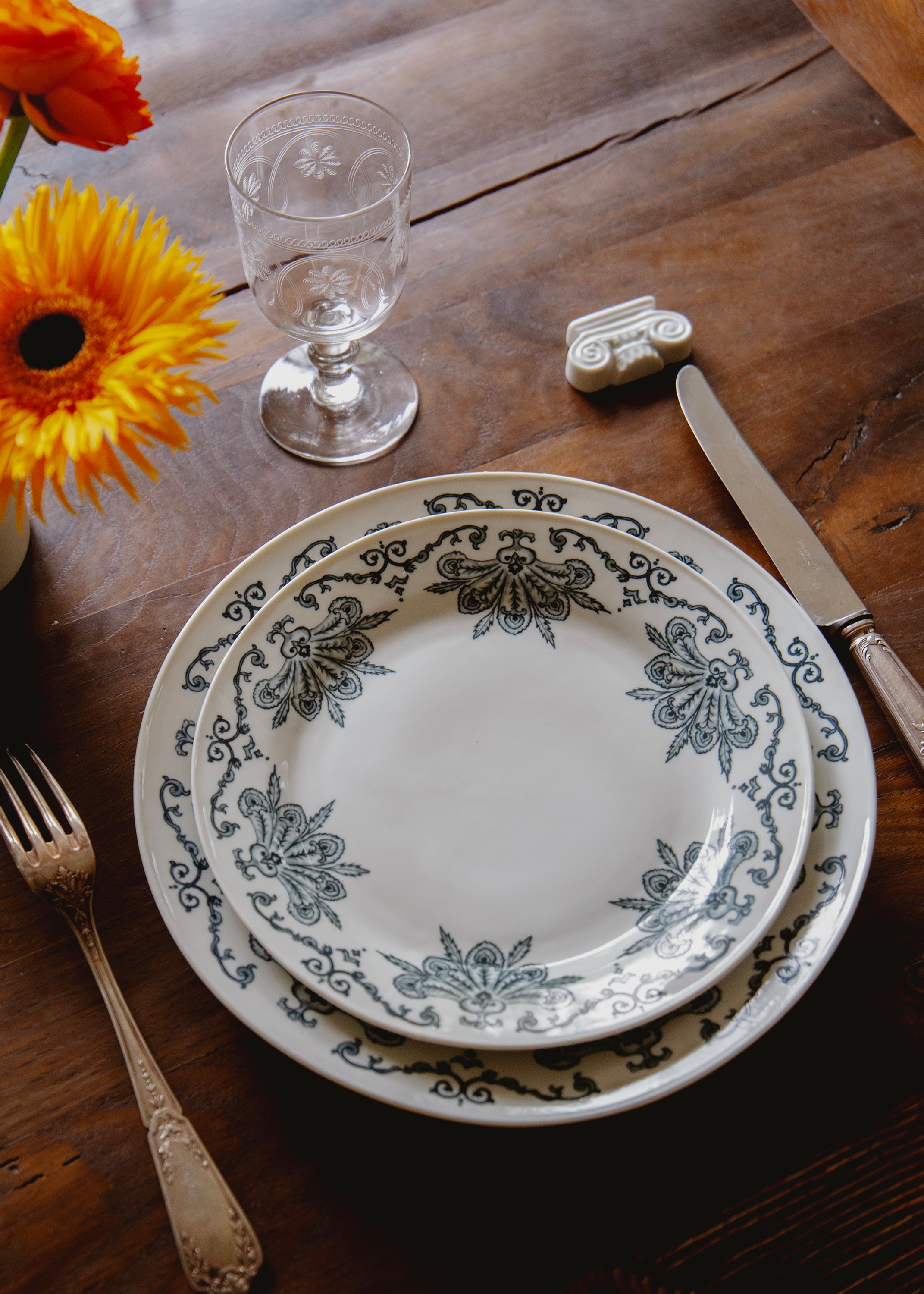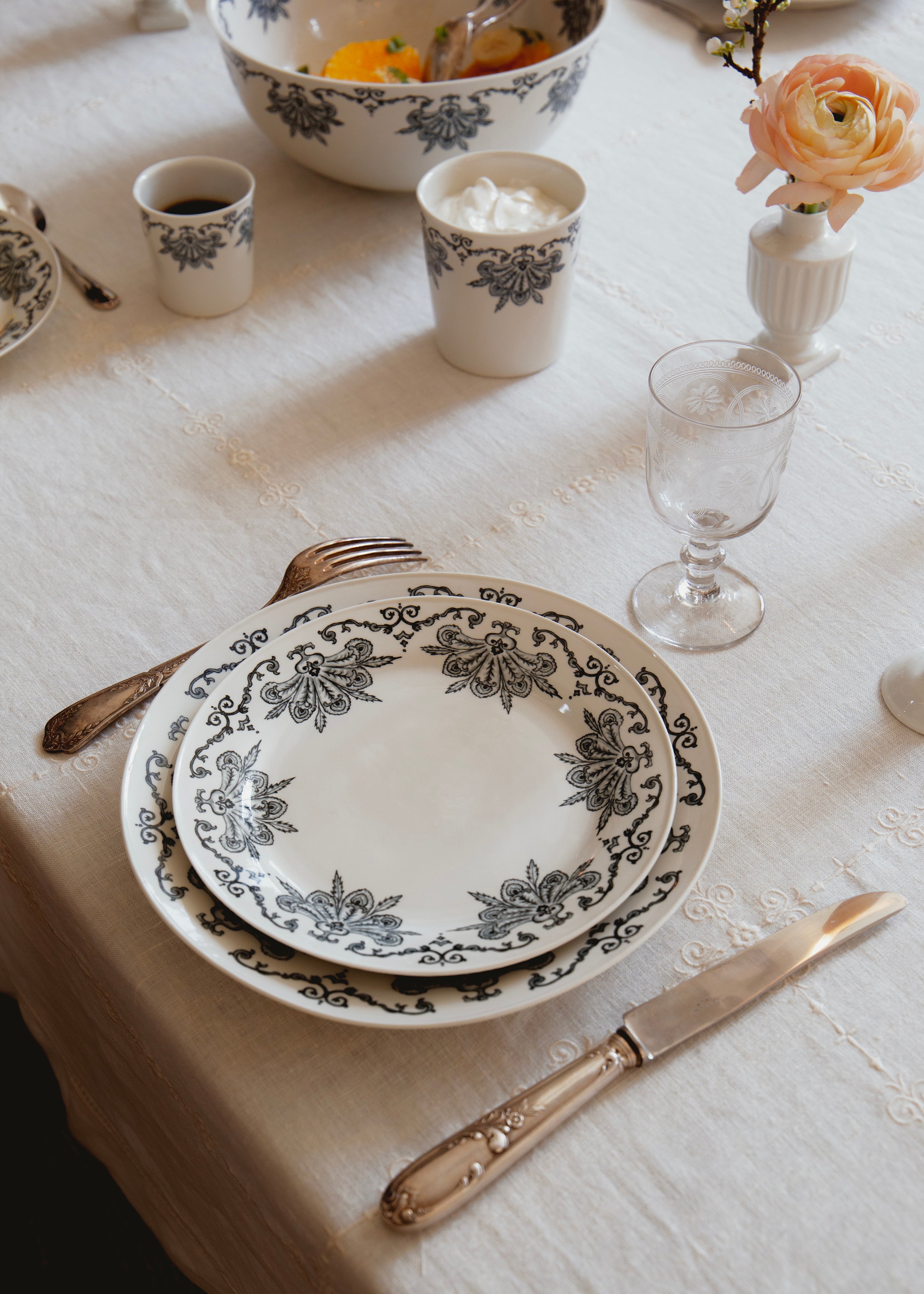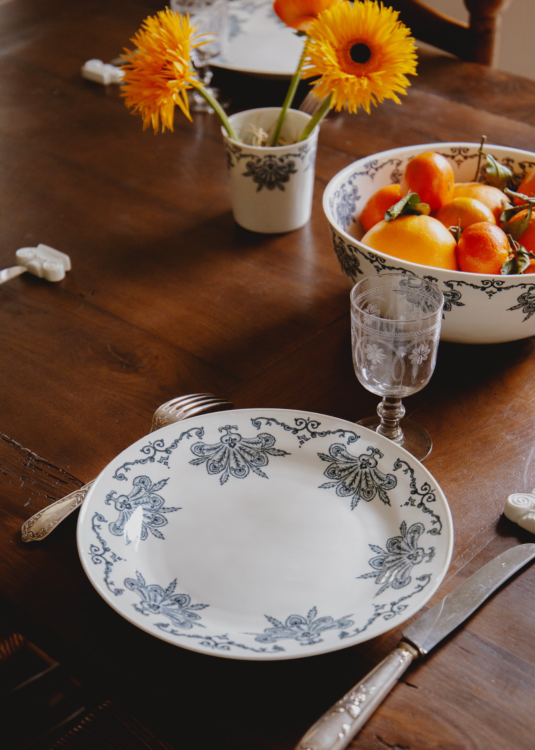 Hommage érudit au XVIIIe siècle, la collection Plume fait dialoguer la rigueur des faïences classiques avec la poésie orientale des Indiennes. Un métissage précieux où le bleu de cobalt vient sceller l’union de l’histoire et du geste artisanal.