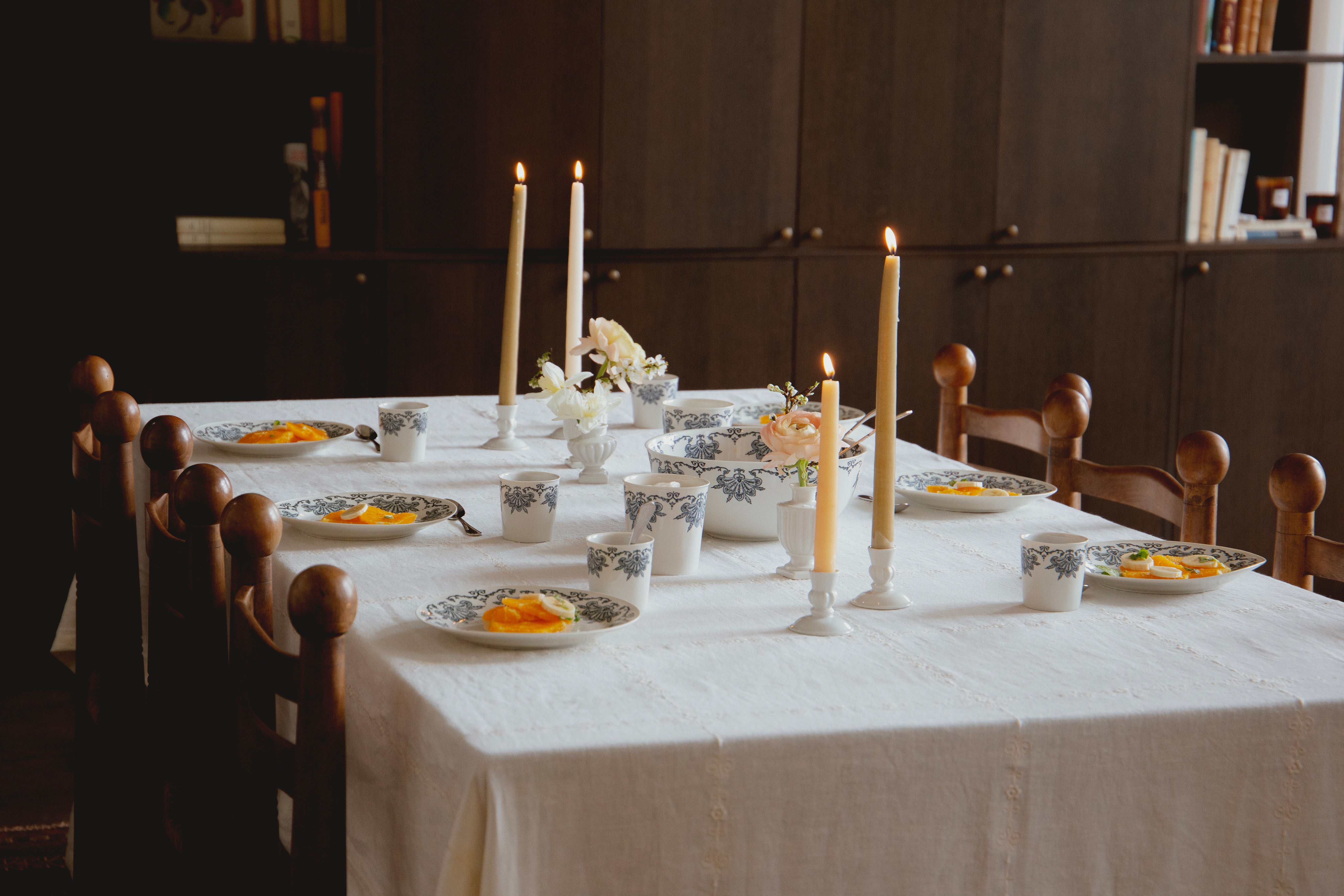 Coulée à la main, chaque pièce de la collection Plume perpétue un geste artisanal précis, sublimé par le bleu de cobalt. Seul pigment capable de défier les 1400°C de la porcelaine, il offre ce fondu singulier qui vient habiller la matière. Plus qu'un décor, il incarne une élégance sobre et intemporelle, rendue inaltérable à travers les siècles.